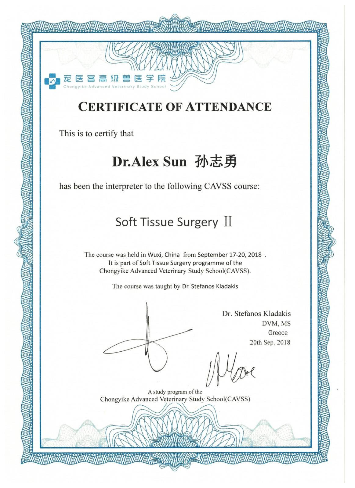 宠医客软组织外科证书