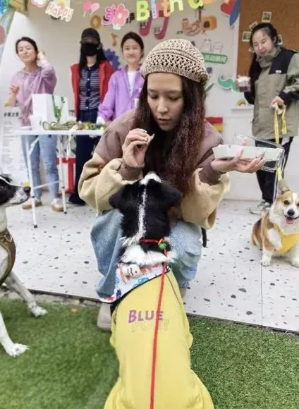 分享生日蛋糕给现场所有的狗狗们,欢乐和治愈的时刻