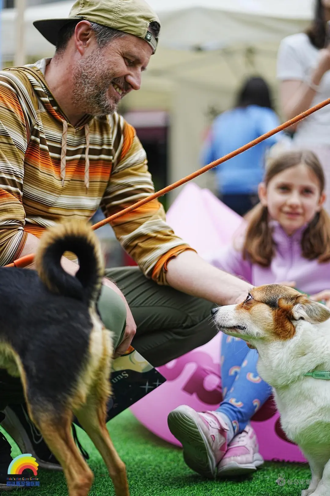 小爱也在用她的方式和她的伙伴打招呼,摇摇尾巴一起奔跑相互“撕咬”来表达她的开心。毛孩子家长也热情的和我们打招呼,诉说着毛孩子的近况,“最近这孩子食欲太好了,减肥大计被阻碍了,还是得狠下心不能惯着~不然年纪大了,关节问题老多了……”“我们很认真地听从医嘱,每天都给他刷牙!现在牙齿保护的可好了,快给医生哥哥姐姐炫耀一下我们的牙齿!”“自从学了一些行为学,每天会刻意训练一些行动,现在行为问题少了很多,也是个有礼貌有教养的小孩儿了~”