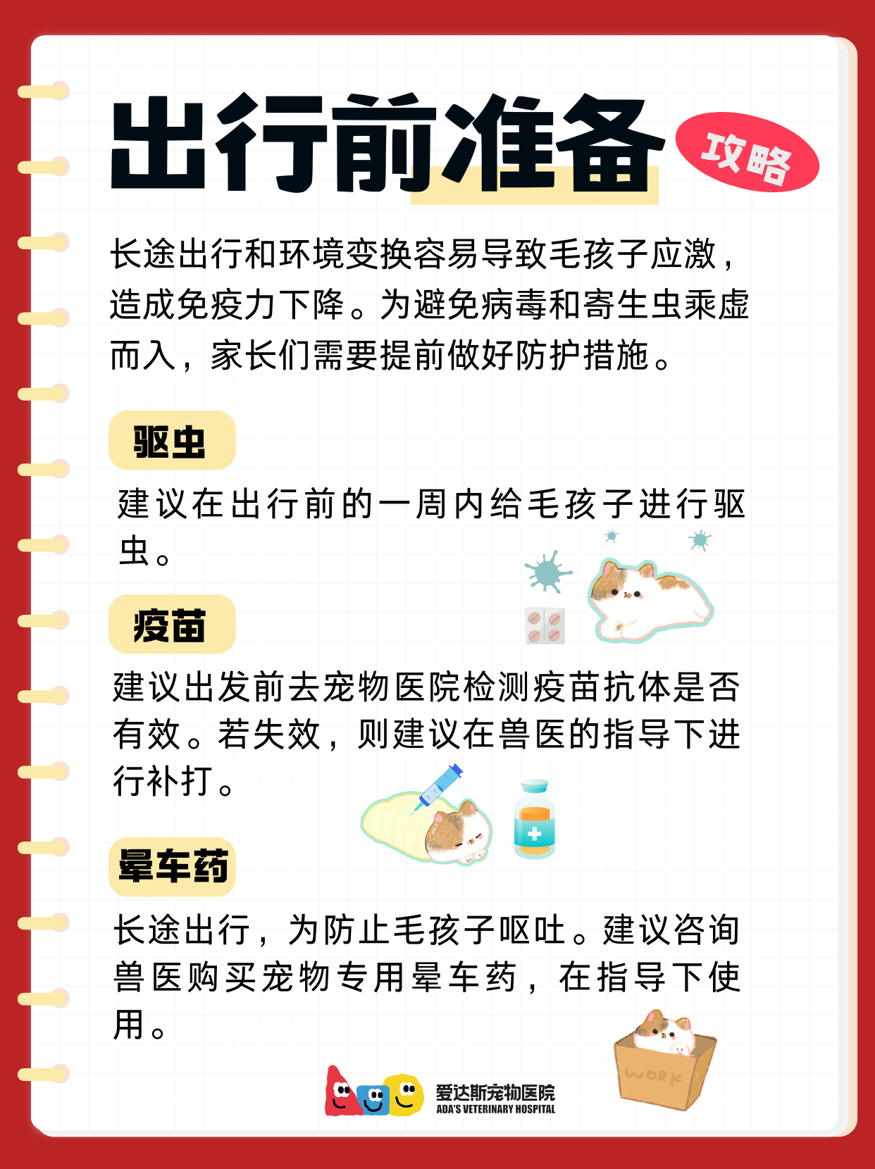 出行前: ✅提前驱虫+疫苗(看情况补打) '