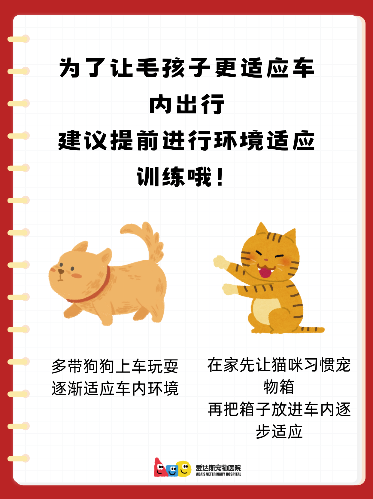 适应流程: 提前让宠物熟悉航空箱/车内环境