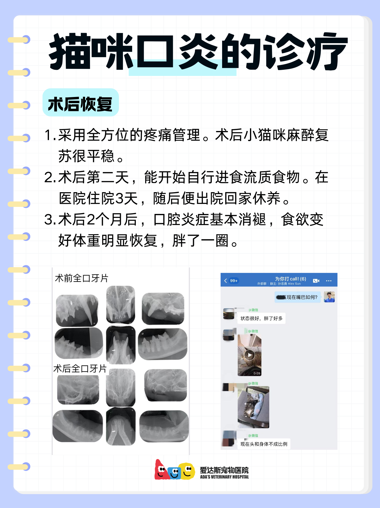 住院3天出院。2个月后,炎症消退,胖了一大圈! 划重点: 猫口炎拖越久,拔牙效果越差 一旦出现食欲差、流口水,尽快干预!